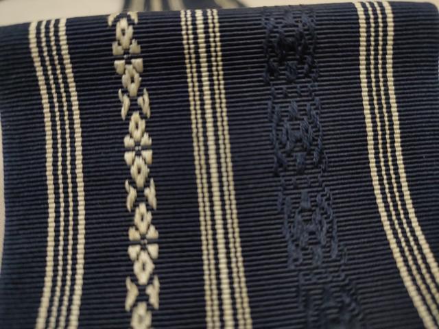 仏具のひとつである独鈷、華皿を基にした幾何学模様が織られています。