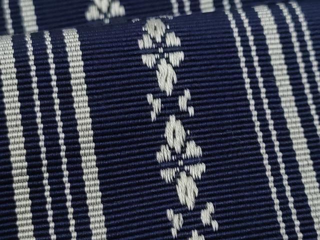 仏具のひとつである独鈷、華皿を基にした幾何学模様が織られています。