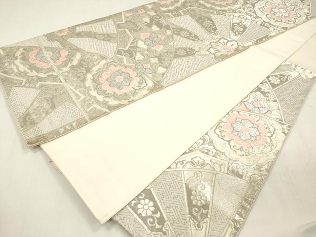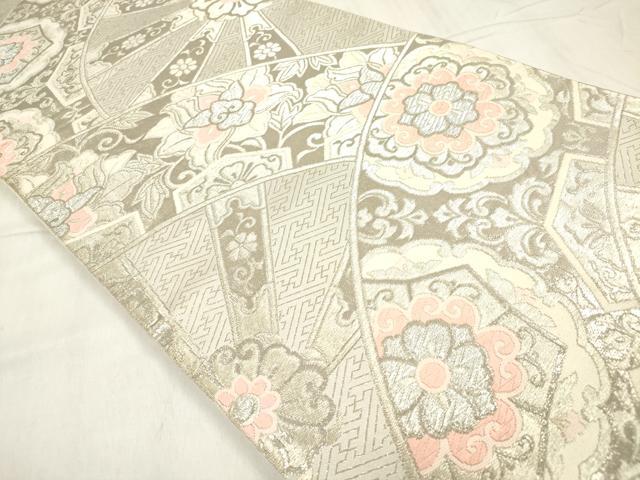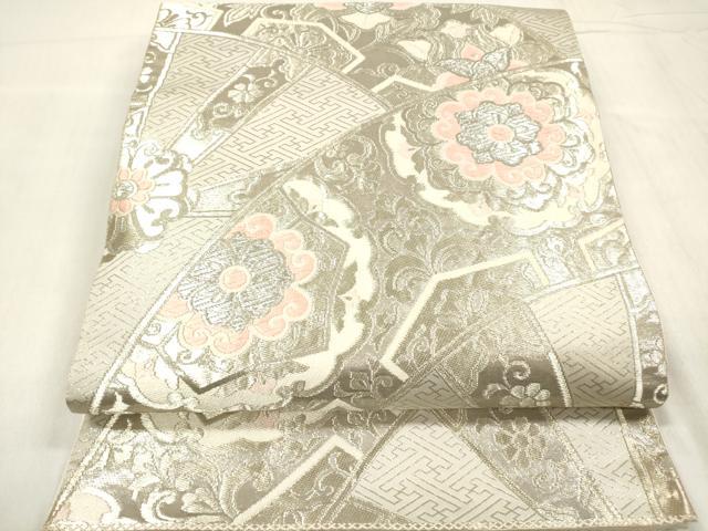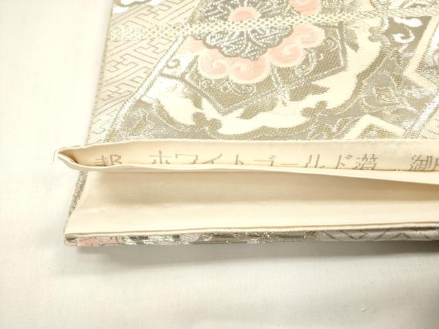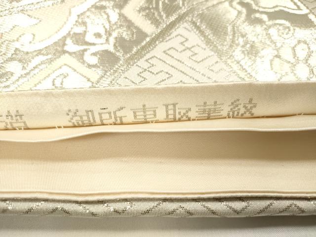 平和屋着物◎西陣 まいづる謹製 六通柄袋帯 御所車取華紋 ホワイトゴールド箔 正絹 逸品 DABB6816ea