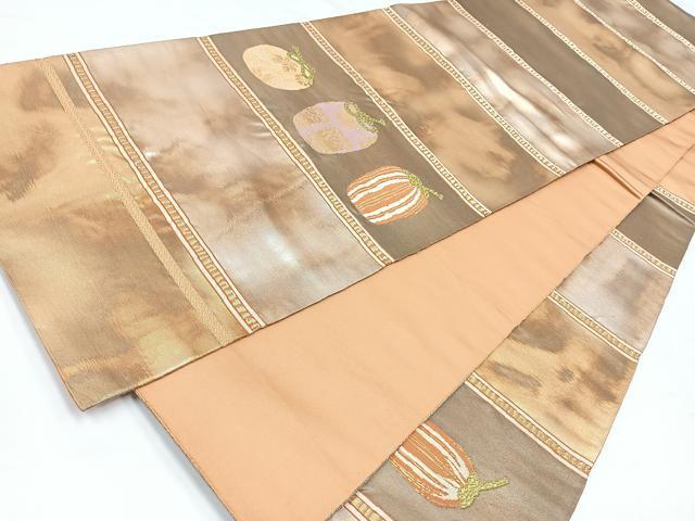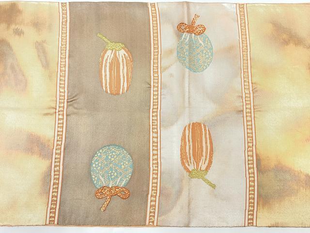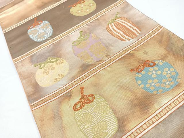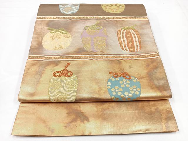 平和屋着物◎西陣 服部織物謹製 六通柄袋帯 こはく錦 横段仕覆文 金糸 西武百貨店扱い 正絹 逸品 CABB0872nb