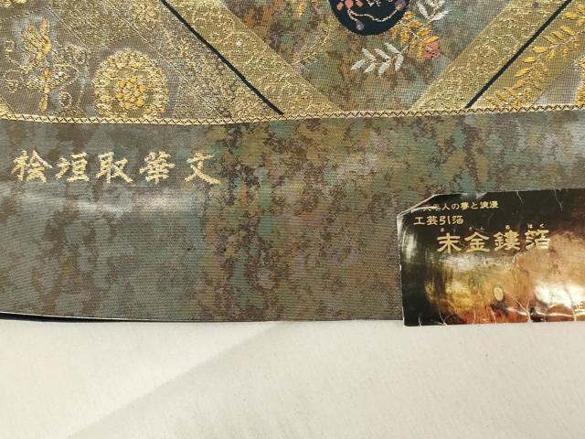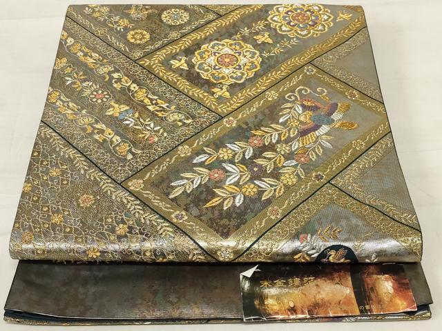 平和屋着物◎西陣 村田織物謹製 六通柄袋帯 桧垣取華文 金銀糸 引箔 正絹 逸品 未使用 AABD9289ou