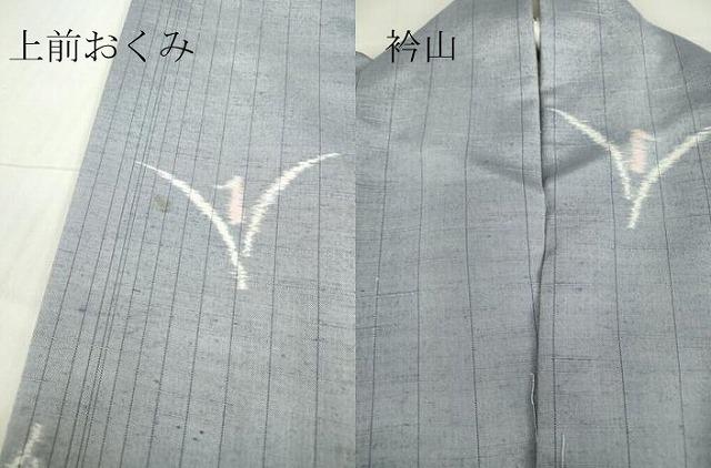状態は接写画像のように上前おくみ・衿山に薄い汚れがございますが