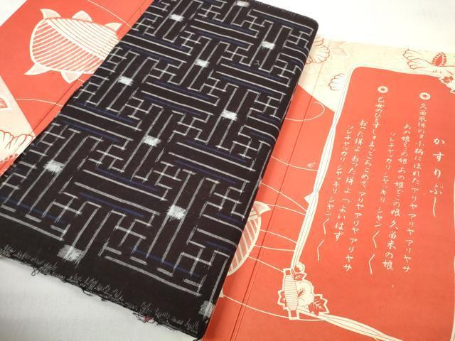 平和屋着物●久留米絣 反物 着尺 秋名バラ柄 井上庄一作 箱・証紙付き 綿 逸品 未使用 DABC1984zzz
