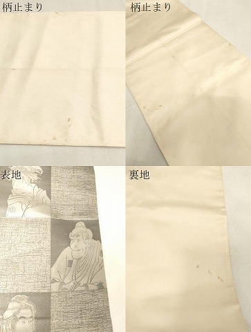 状態は接写画像のように柄止まりに汚れ・折山の線汚れ、
