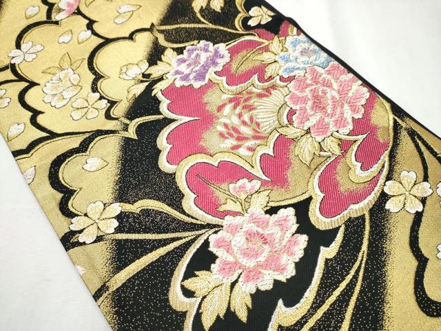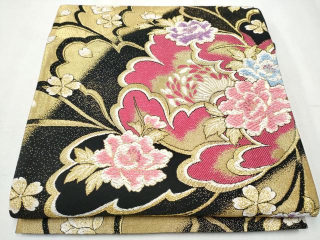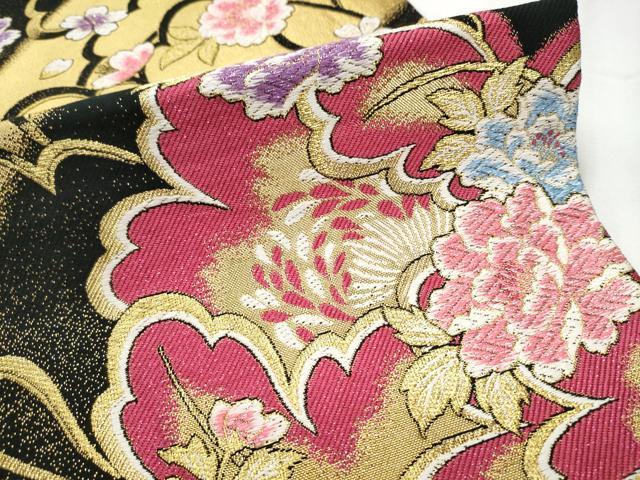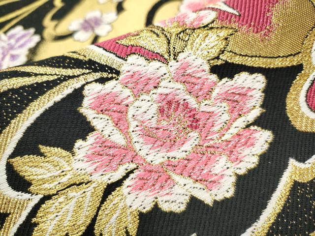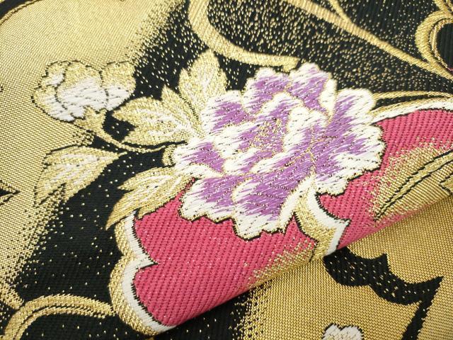 平和屋着物●六通柄袋帯 唐織 舞花文 黒地 金糸 正絹 逸品 CABA5122hy