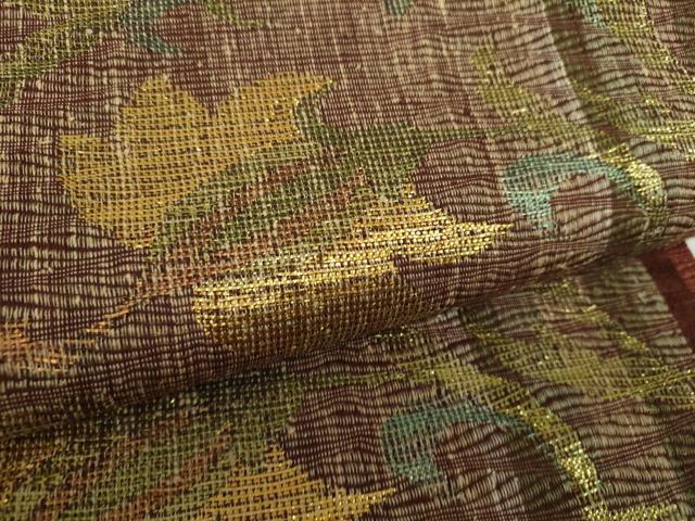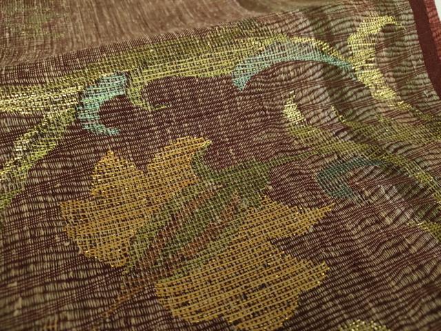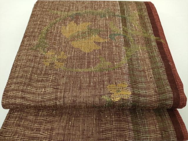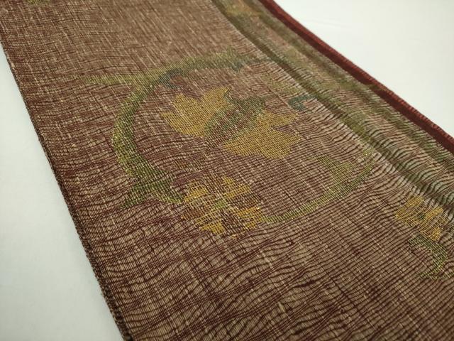 平和屋着物●六通柄袋帯 紬地 草花間道 金糸 正絹 逸品 未使用 DAAY1266ps