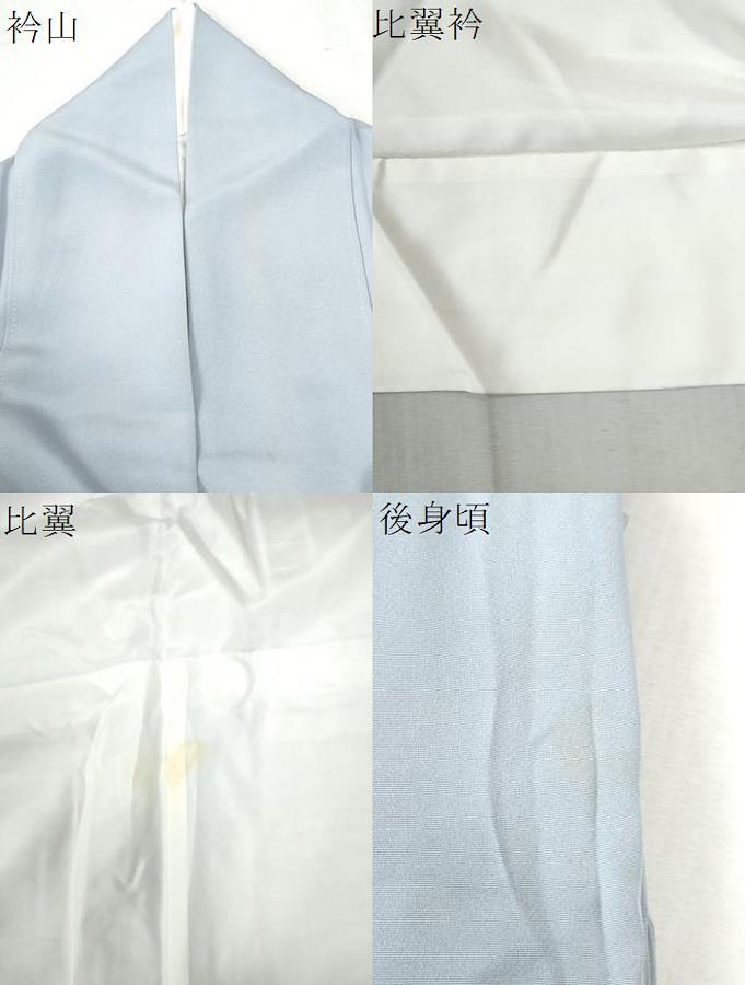 状態は接写画像のように衿山・比翼衿・比翼・後身頃に薄い汚れがございますが