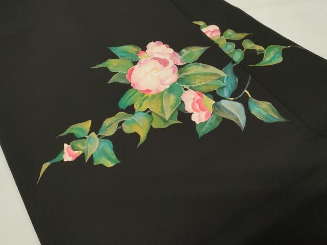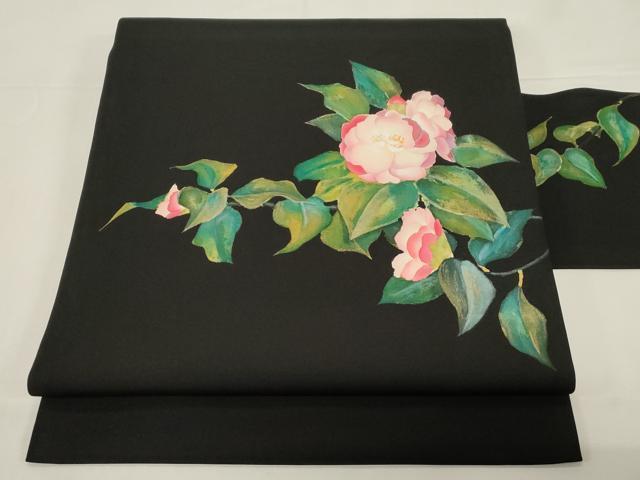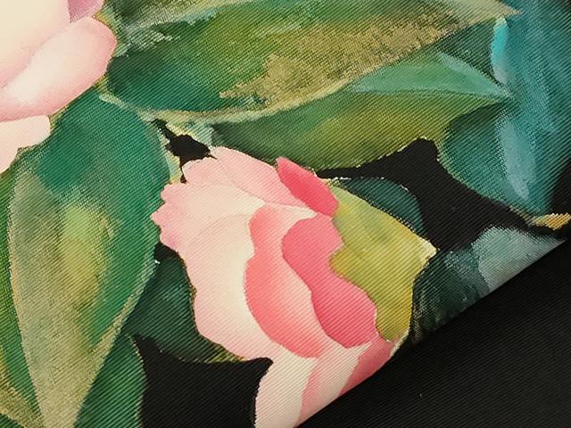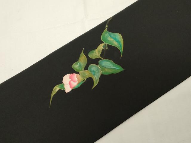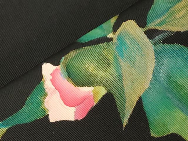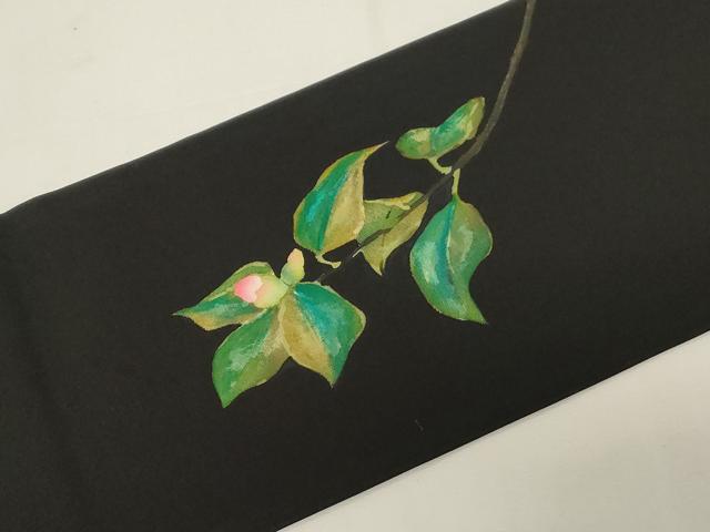 平和屋着物●加賀友禅の巨匠 初代 由水十久 塩瀬 九寸名古屋帯 手描き 草花文 黒地 金彩 正絹 逸品 CABE3738dy
