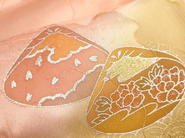 平和屋着物●和装小物 帯締め・帯揚げセット 貝合わせ花文 金銀彩 手組紐 金糸 逸品 未使用 DABD7645zzz