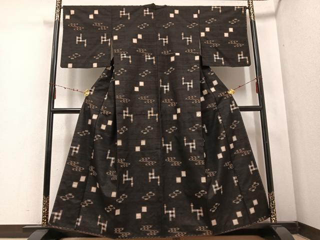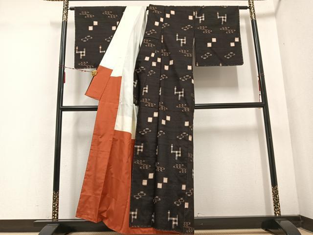 平和屋着物●国指定重要無形文化財 本場久米島紬 琉球絣文様 手織 正絹 逸品 未使用 AABE4805ph