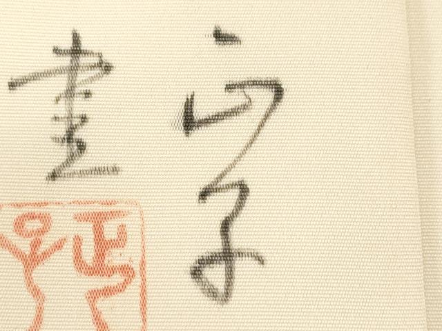 平和屋着物●塩瀬 九寸名古屋帯 作家物 手描き 文字文 正絹 逸品 CABE3739dy