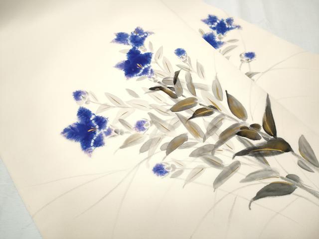 平和屋着物●塩瀬 九寸名古屋帯 作家物 枝花文 金彩 正絹 逸品 CABB5737hy