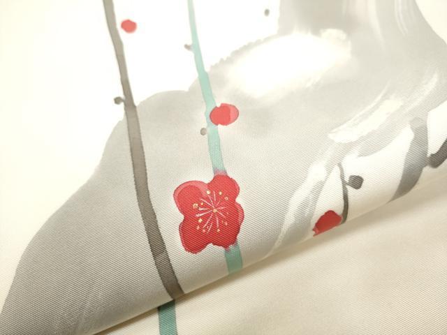 平和屋着物●塩瀬 九寸名古屋帯 手描き 枝梅文 金彩 正絹 逸品 CABB0496hy