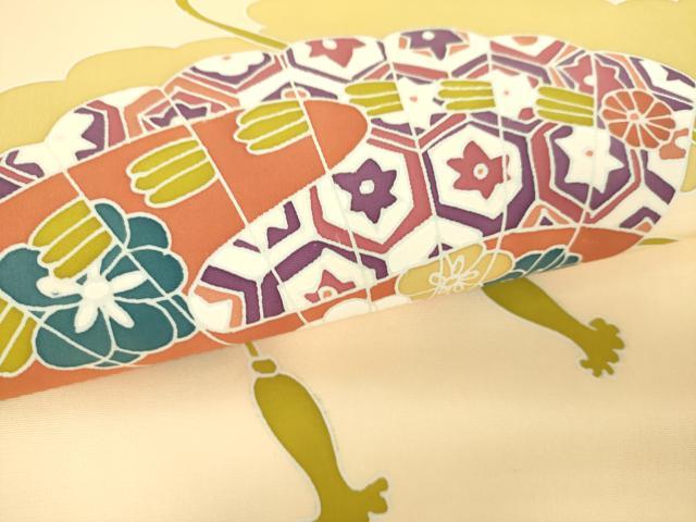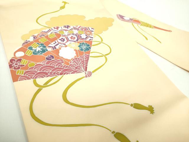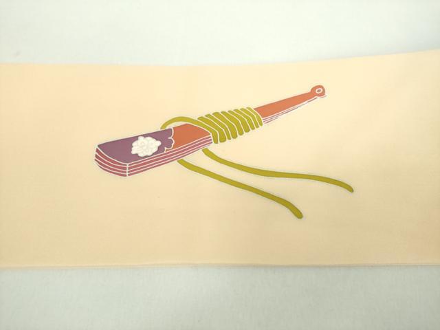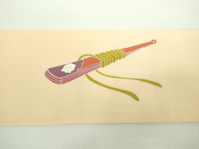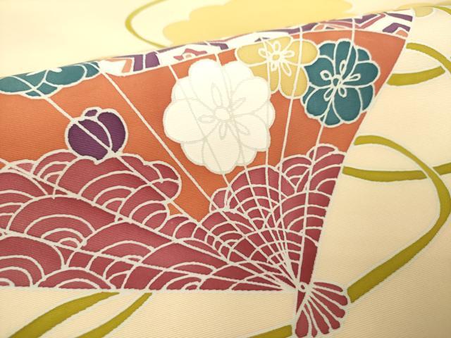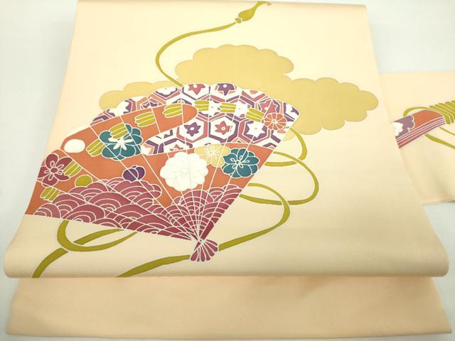 平和屋着物●塩瀬 九寸名古屋帯 雲取り檜扇花文 正絹 逸品 DABD1316ps