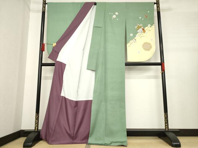 平和屋着物●小振袖 二尺袖 立ち雛 兎 金彩 洗える着物 AABE2469ck
