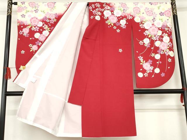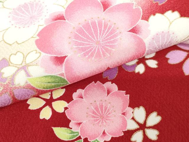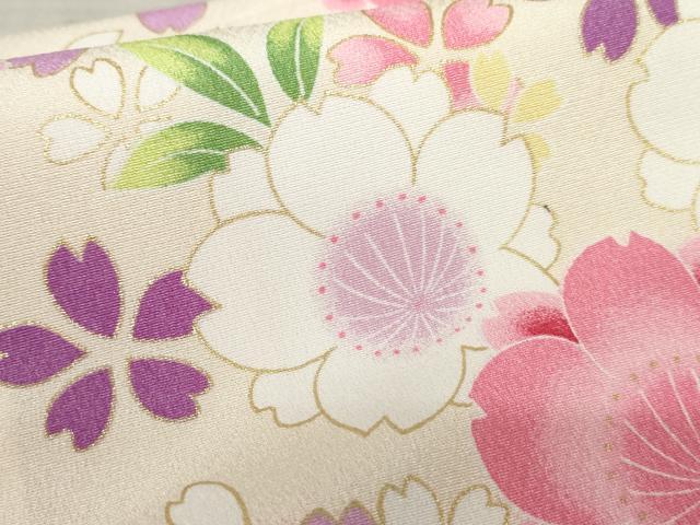 平和屋着物●小振袖 二尺袖 草花文 暈し染め 金彩 洗える着物 AABE2796cs