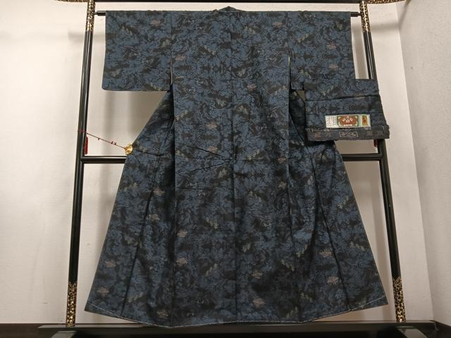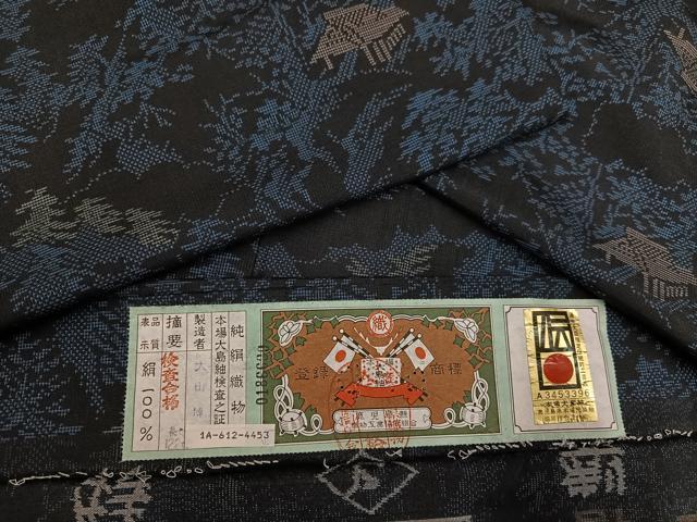 平和屋着物●本場大島紬 カタス7マルキ 風景樹林文 大山博作 証紙付き 正絹 逸品 未使用 AABE5847ph