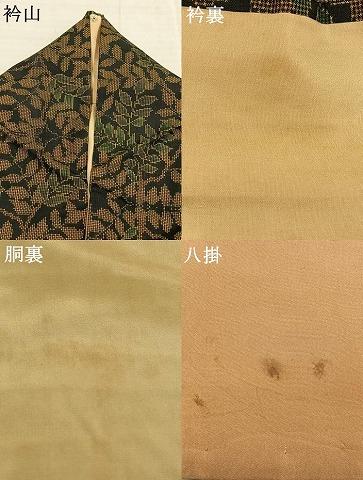 状態は接写画像のように衿山・衿裏・胴裏・八掛に薄い汚れがございますが