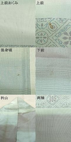 状態は接写画像のように上前おくみ・後身頃・下前・両袖に薄い汚れ、上前・衿山に汚れがございますが