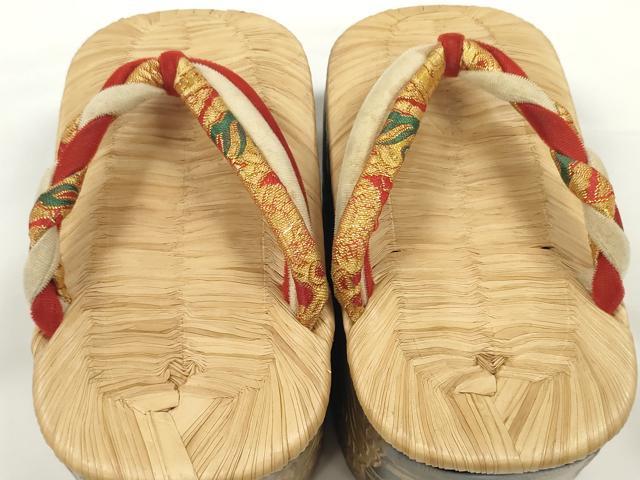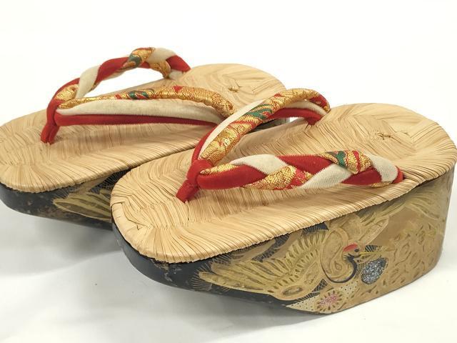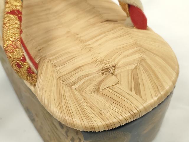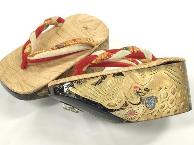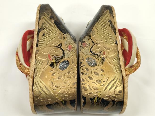 平和屋着物●極上 和装小物 ぽっくり下駄 こっぽり・おこぼ下駄 畳表 金蒔絵 鶴 16.5cm 逸品 DZAA11771kh6