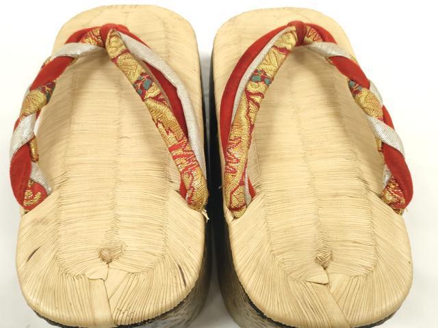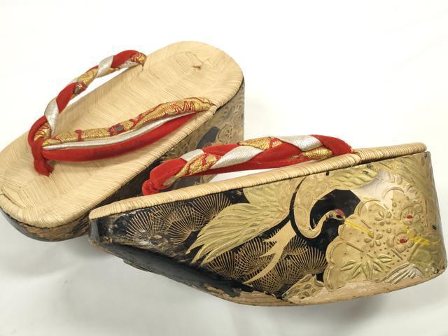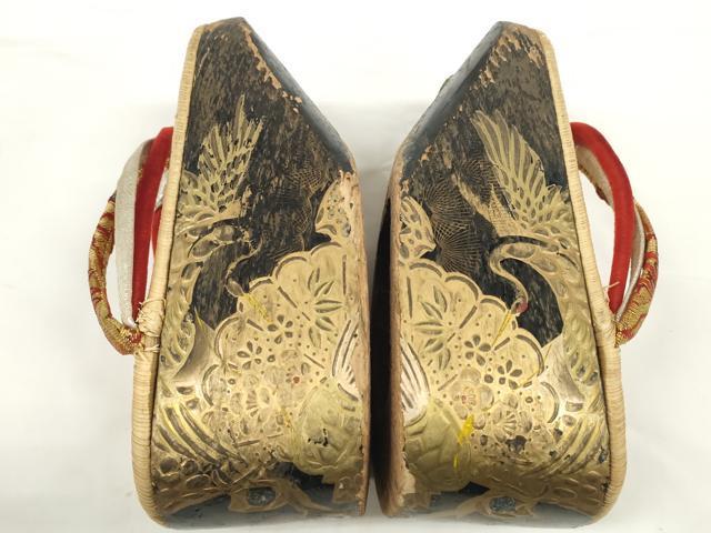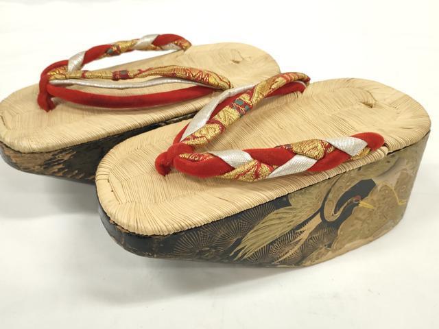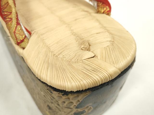 平和屋着物●極上 和装小物 ぽっくり下駄 こっぽり・おこぼ下駄 畳表 金蒔絵 鶴松竹梅文 19.5cm 逸品 DZAA11773kh6