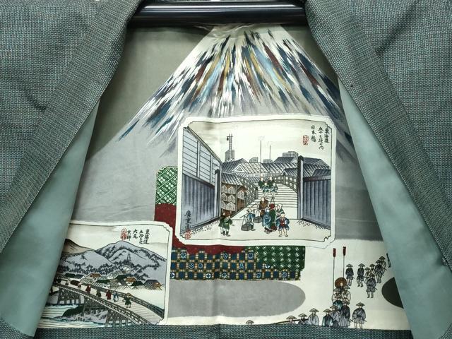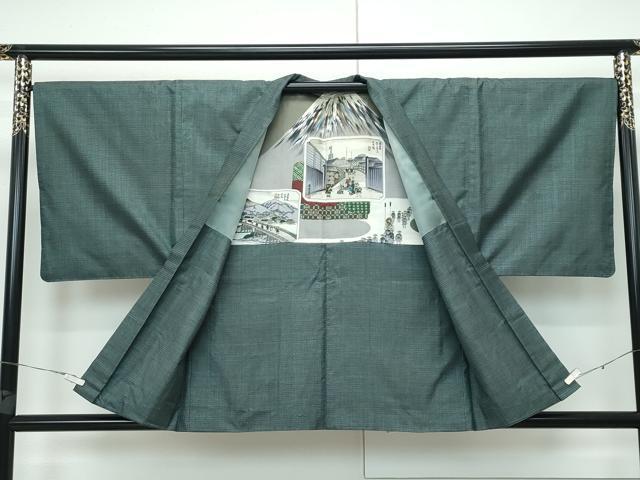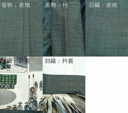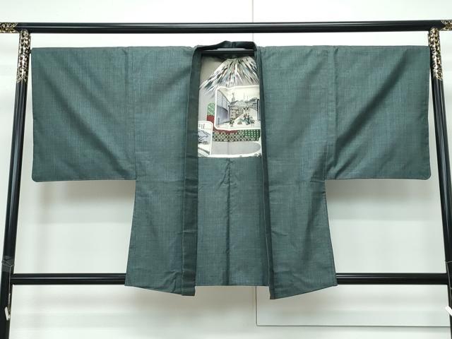 羽織の状態は接写画像のように、表地所々・衿裏に汚れ、羽裏にアクがございます。