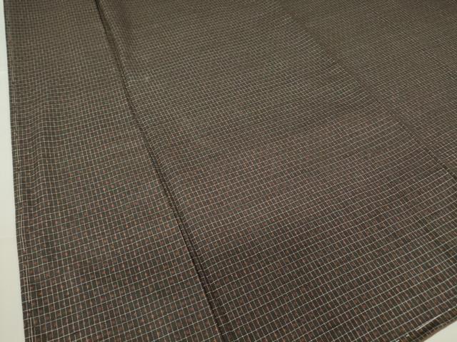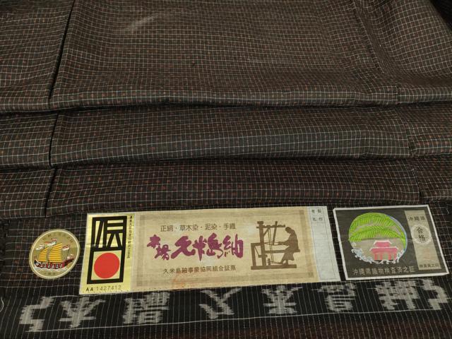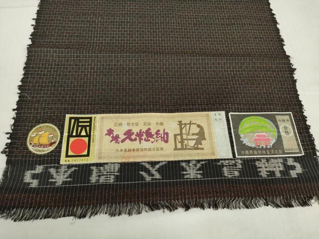 平和屋着物●男性 国指定重要無形文化財 本場久米島紬 手織 絣格子文 証紙付き 正絹 逸品 未使用 DABC3940az