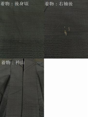 着物の状態は接写画像のように後身頃・右袖後・衿山に薄い汚れがございますが