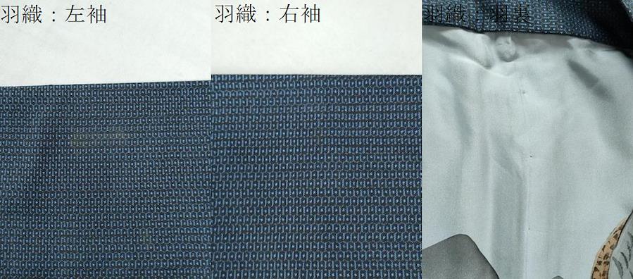 羽織の状態は接写画像のように左袖・右袖・羽裏に薄い汚れがございますが