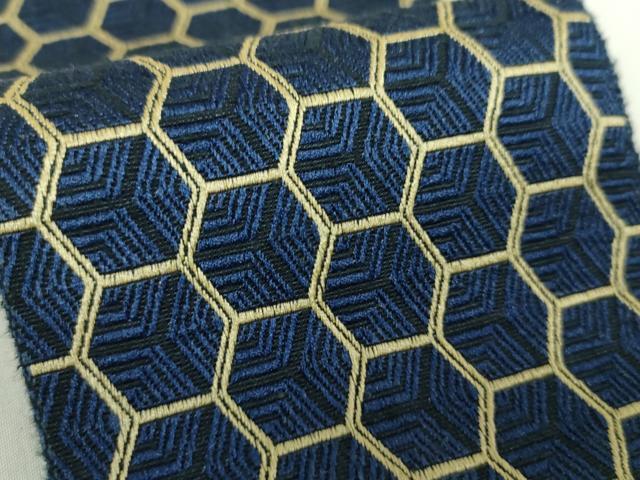 仏具のひとつである独鈷、華皿を基にした幾何学模様が織られています。