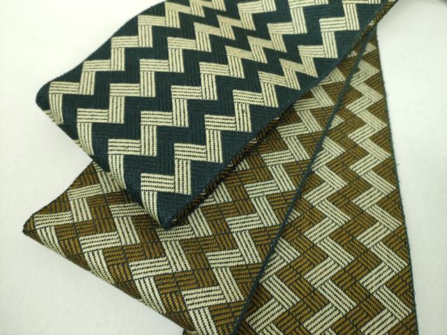 平和屋着物●男性 本場筑前博多織 両面 角帯 変わり間道 正絹 逸品 未使用 DABD1503ps