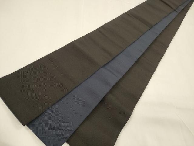 平和屋着物●男性 本場筑前博多織 両面 角帯 烏羽色 鉄紺色 正絹 逸品 DAAZ4093cm