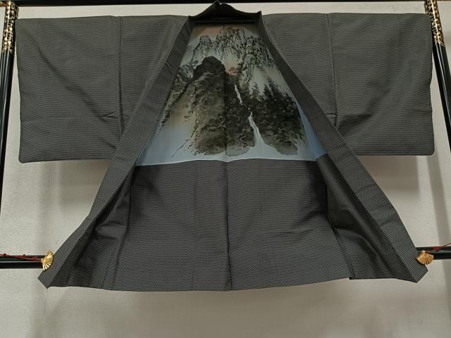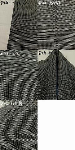 平和屋着物●男性 紬 アンサンブル 亀甲絣 黒地 正絹 逸品 AABD3424ph
