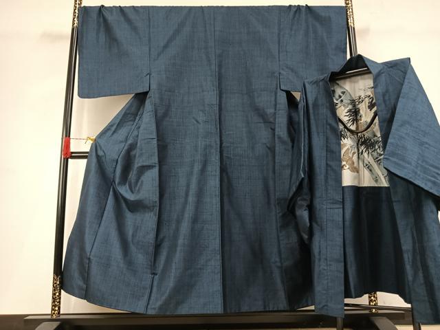平和屋着物●男性 紬 アンサンブル 格子 キングサイズ 正絹 逸品 AABH0760fy
