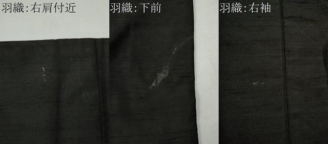 羽織の状態は接写画像のように右肩付近・右袖・下前に汚れがございますが