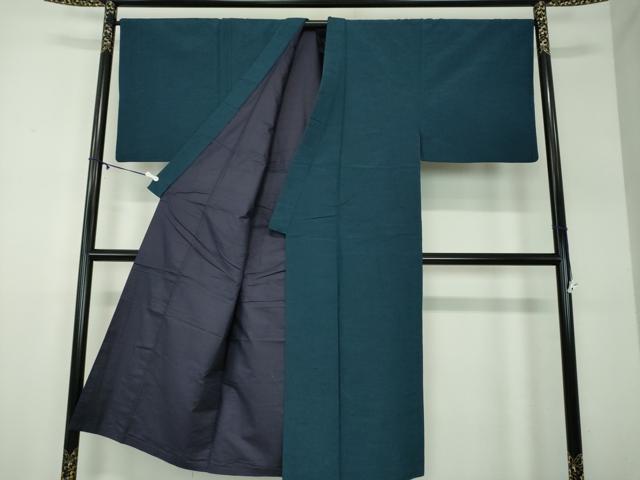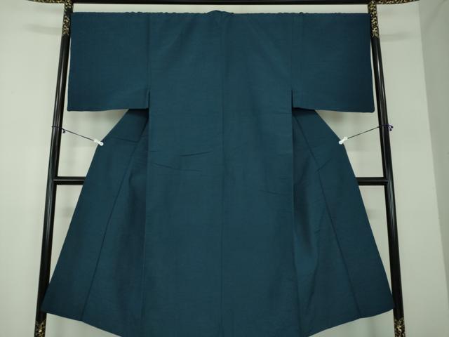 平和屋着物●男性 紬 色無地 濃藍色 正絹 逸品 DABD1391ps