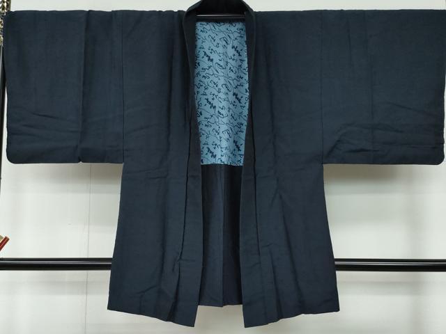 平和屋着物●男性 紬 髭紬・羽織セット 藍鉄色 正絹 逸品 CAAR8117vf