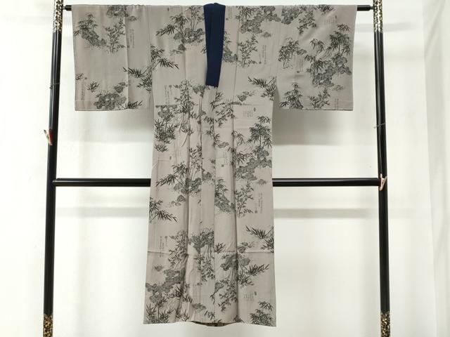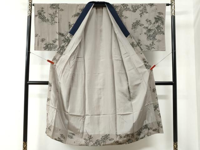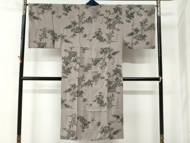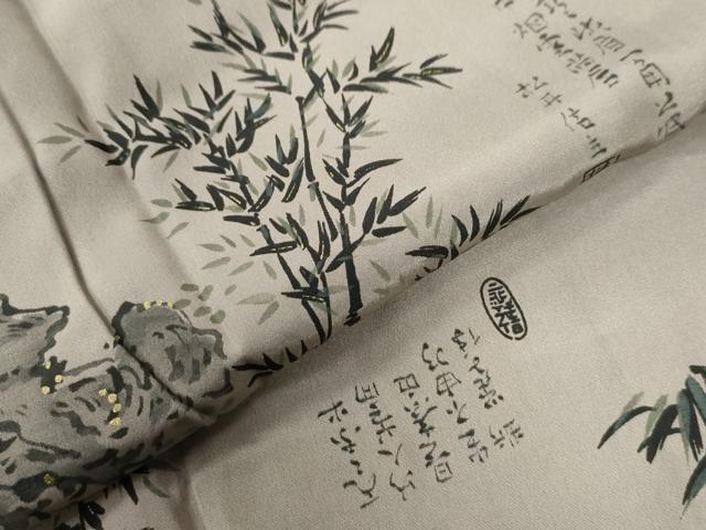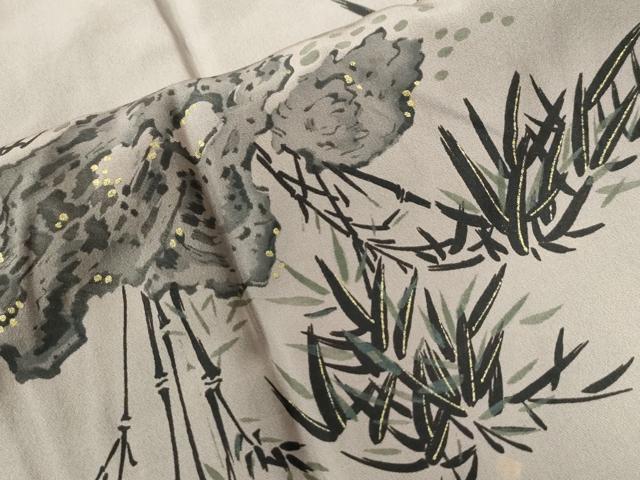 平和屋着物●男性 長襦袢 袷 手描き 笹竹文 金彩 正絹 逸品 CAAZ3641yc