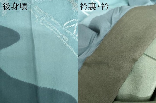 状態は接写画像のように後身頃にヤケ、衿・衿裏に薄い汚れがございますが