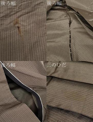 状態は接写画像のように後ろ幅・三のひだに薄い汚れ、後ろ幅に直し跡、後ろ幅に糸解けがございますが