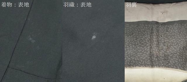 羽織の状態は接写画像のように表地所々・羽裏に薄い汚れがございます。