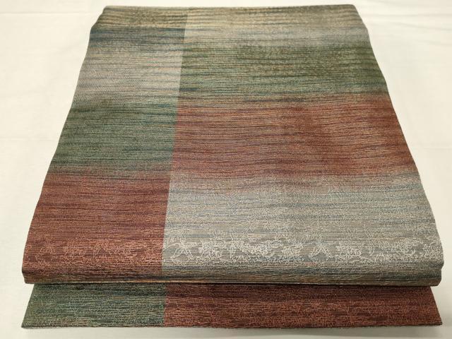 平和屋着物●紋屋井関 御寮織 両面 全通柄袋帯 横段文 金糸 正絹 逸品 CABB7269dy