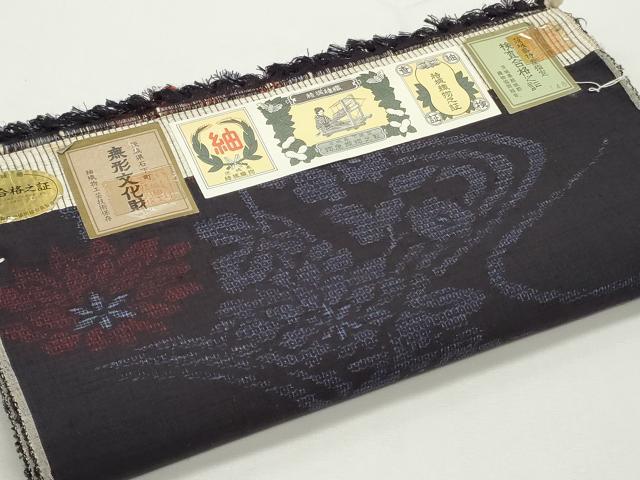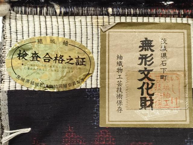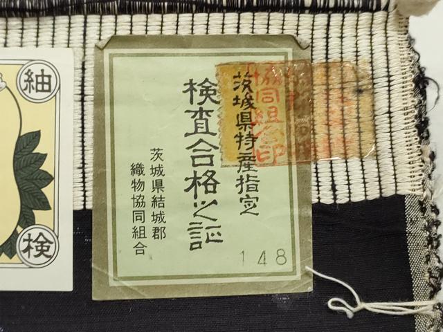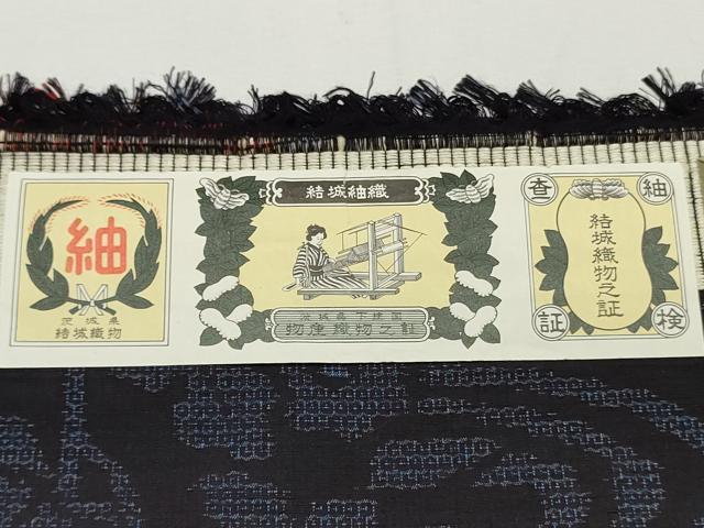 平和屋着物●結城紬 結城紬織 反物 着尺 120亀甲 流水花文 証紙付き 逸品 未使用 DABC4380zy