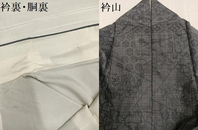 状態は接写画像のように衿裏・胴裏にホックシミ、衿山に薄い汚れがございますが