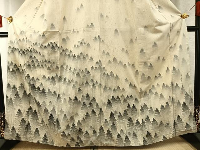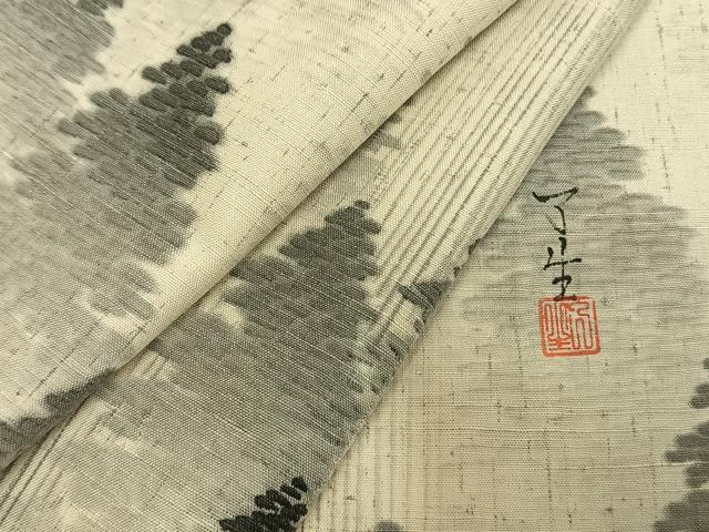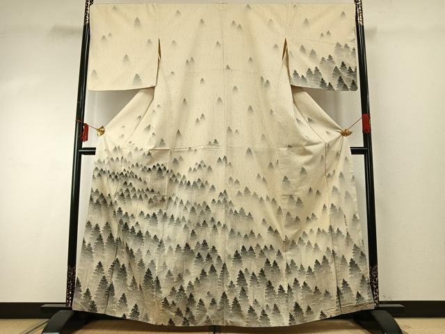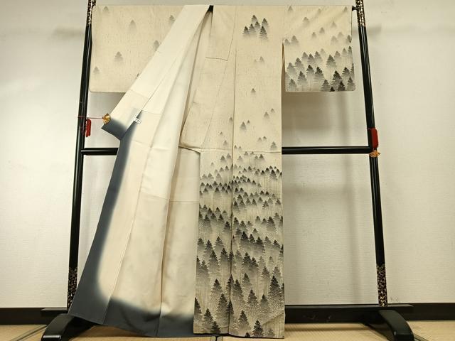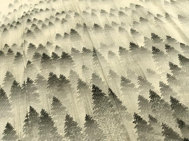 平和屋着物●訪問着 作家物 了生 紬地 手描き 京都杉樹林 北山杉 正絹 逸品 AABE1782fy