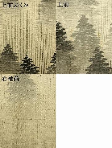 状態は接写画像のように上前おくみ・上前・右袖前に薄い汚れがございますが