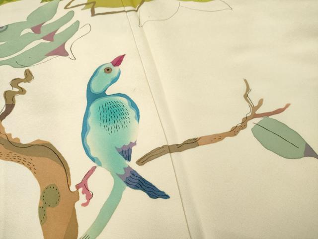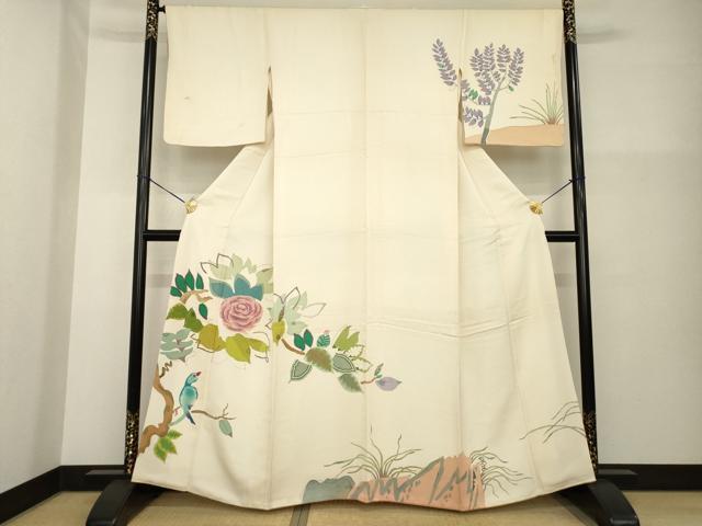 平和屋着物●訪問着 作家物 枝に休み鳥 薔薇 バラ 高島屋扱い 正絹 逸品 AABG4957ck