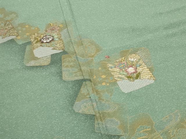 平和屋着物●訪問着 刺繍 色紙重ね鳳凰花文 暈し染め 金銀彩 正絹 逸品 CABA9809gh