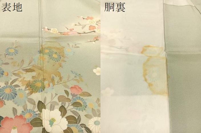 状態は接写画像のように表地所々・胴裏に薄い汚れがございます。