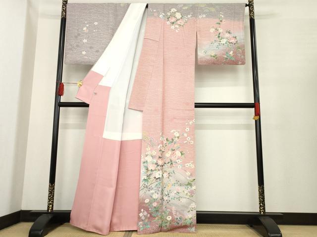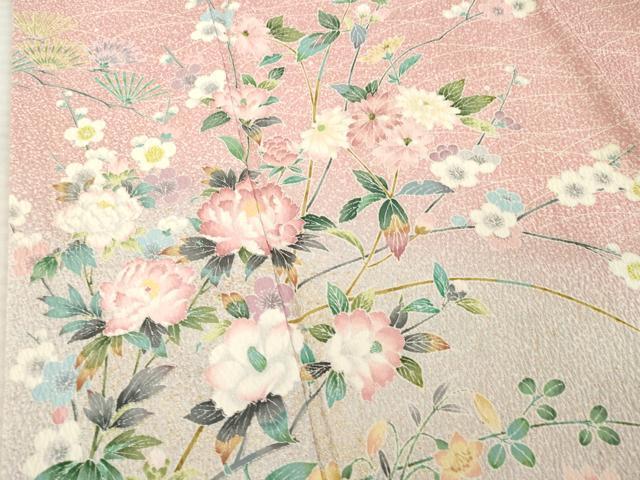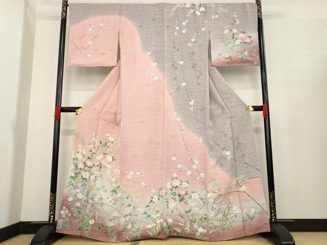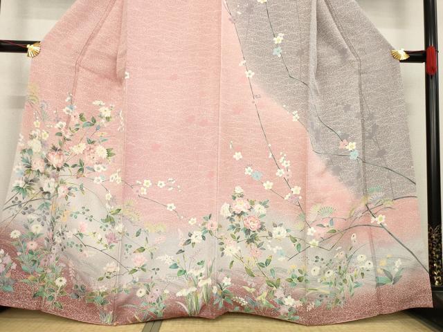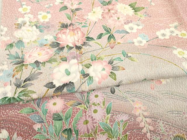 平和屋着物●訪問着 友禅 枝花文 暈し染め 金彩 正絹 逸品 AABE5962ck